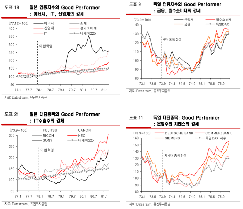 결국 한국의 향후 산업생산 역시 부진할 가능성을 배재할 수 없으며, 스태그플레이션 상황을 고려하여 투자를 결정할 수 밖에 없다. 그렇다면 70년대 1, 2차 오일쇼크로 인한 스태그플레이션 속에서 주요국가(미국, 영국, 독일, 일본)은 각각 어떤 대응을 했을까?