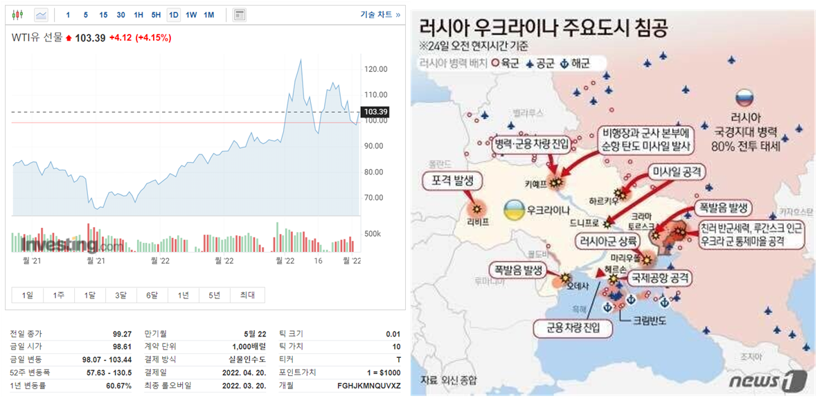 이는 2022년 4월 현재 러시아-우크라이나 전쟁으로 인한 유가 급등 및 지정학적 리스크 발생,