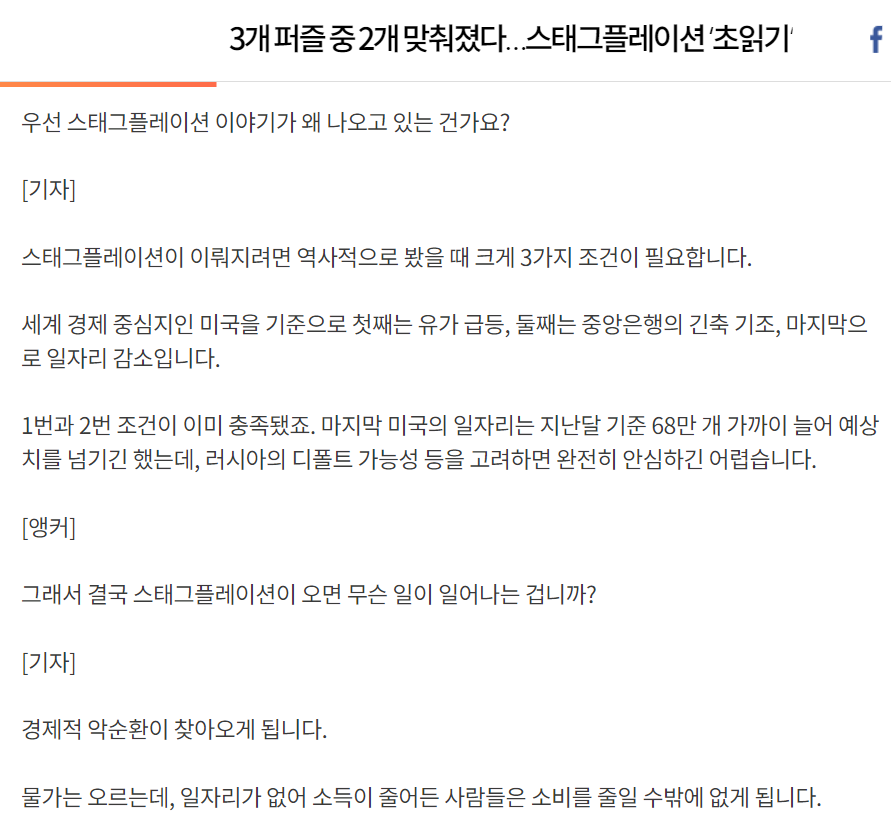 (참고: 3개 퍼즐 중 2개 맞춰졌다…스태그플레이션 ‘초읽기’