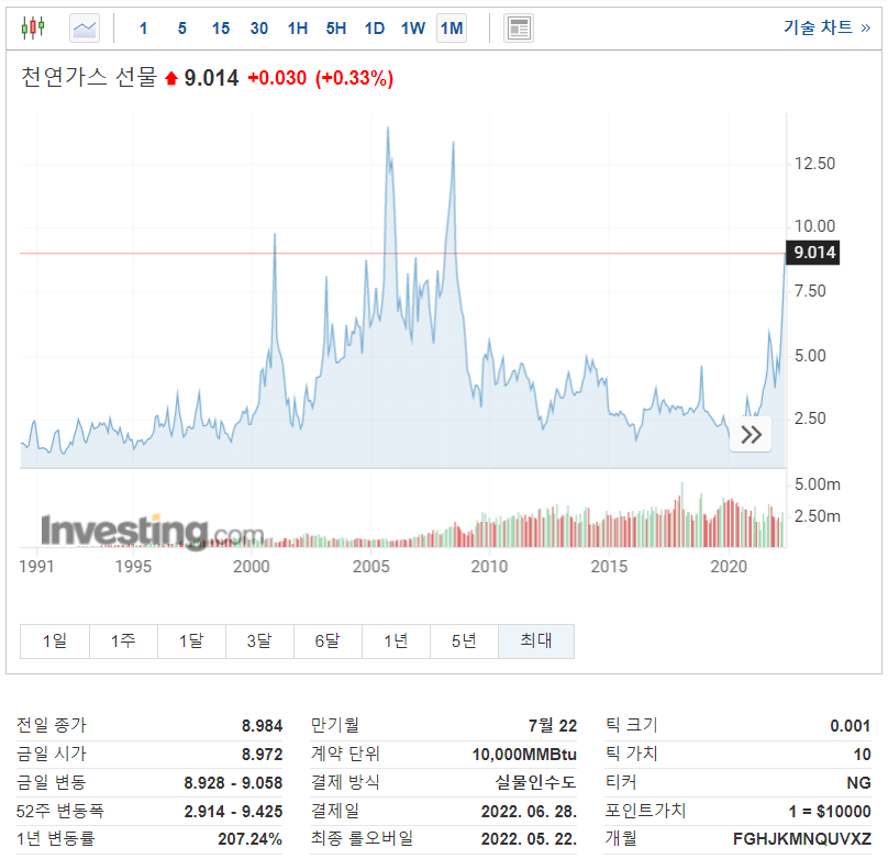 <천연가스 선물 가격(20220526 기준)>