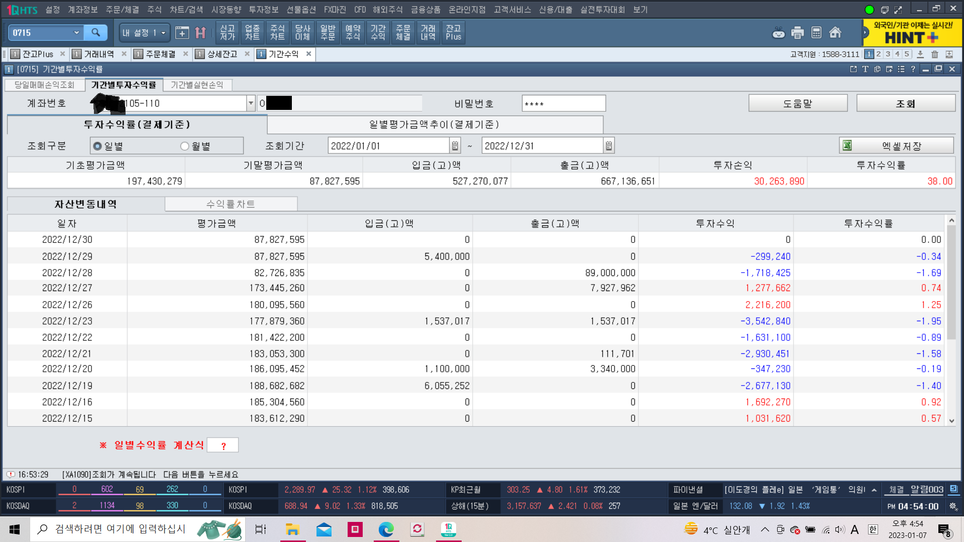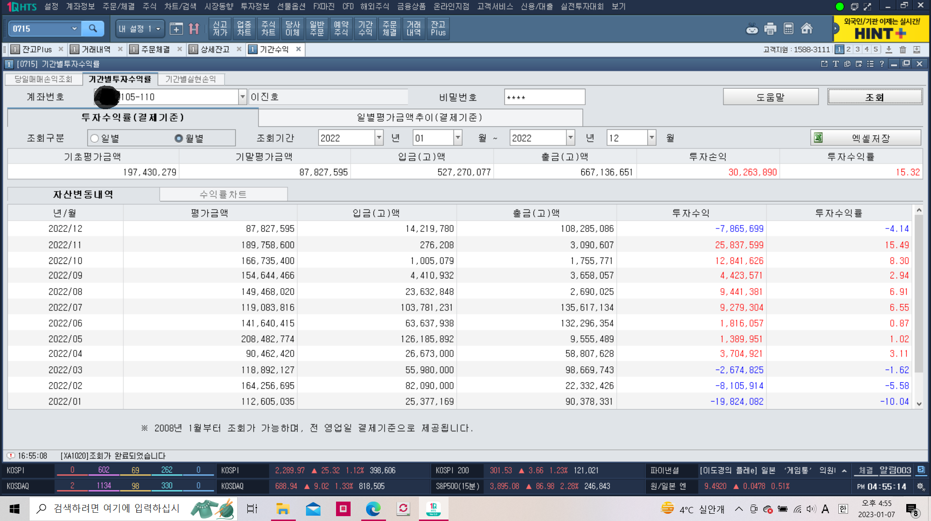 <2022년 연간 수익률 집계(일간 및 월간)>