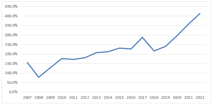 보다 보수적인 수치를 적용하기 위해 이번 2022년은 일단위(+38%)가 아닌 월단위(+15.32%) 연간 수익률 적용)
