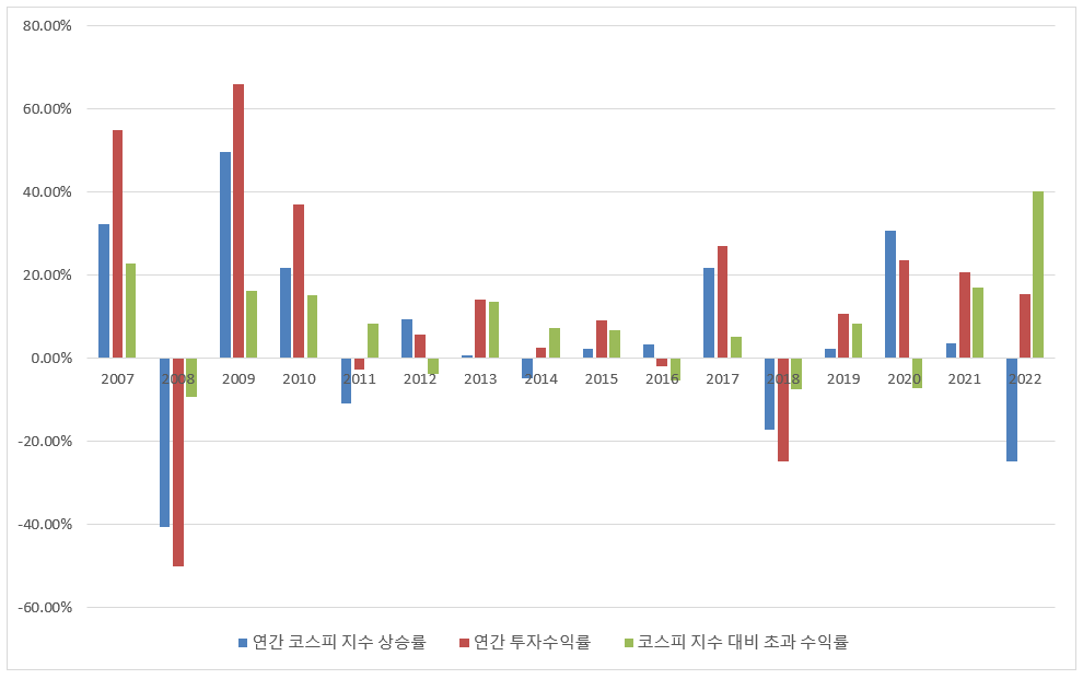 <2007-2022년 연간 투자수익률 결산 내역>