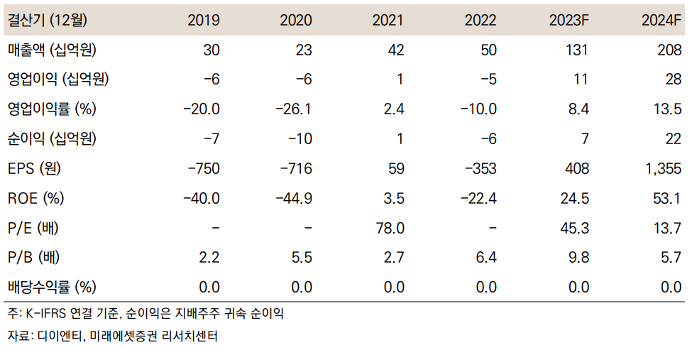 하지만 디이엔티의 재무상태는 열악. 연결기준 부채총계는 2020년 약 264억원에서 올해 1분기 약 846억원으로 늘었다. 장기간 당기순손실이 이어지면서 자본총계는 같은 기간 256억원에서 약 223억원으로 감소. 연결기준 부채비율은 2020년 말 102.8%에서 올해 1분기 말 380.2%로 277.4%포인트 상승했고, 장·단기 차입금 규모는 192억원에서 400억원으로 증가.