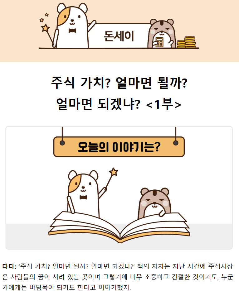 | 연금술사 연재: 주식 가치? 얼마면 될까?얼마면 되겠냐? <2부> (0) | 2023.12.10 |