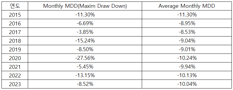 <2015년 이 후 일간 및 월간 계좌 MDD 데이터>