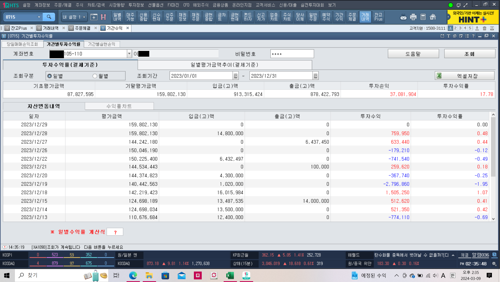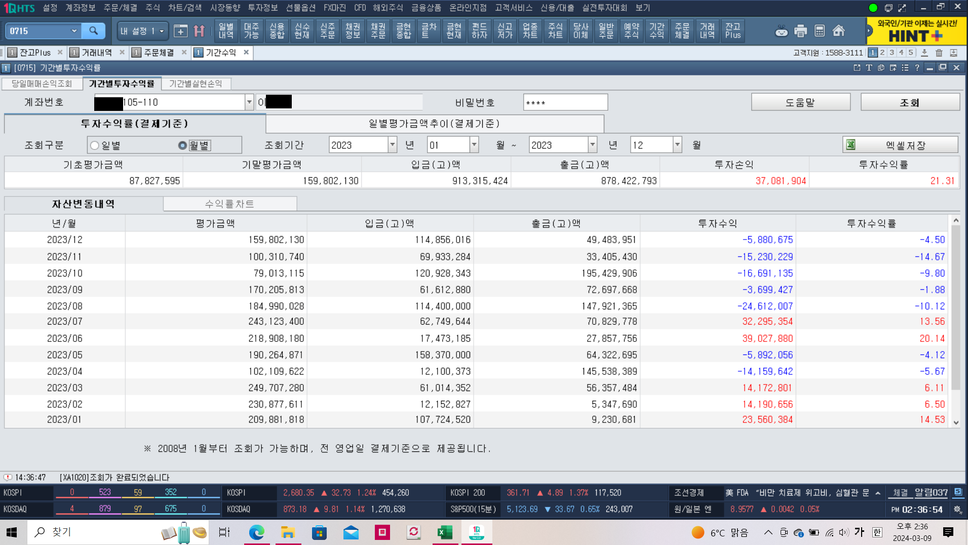 <2023년 연간 수익률 집계(일간 및 월간)>
