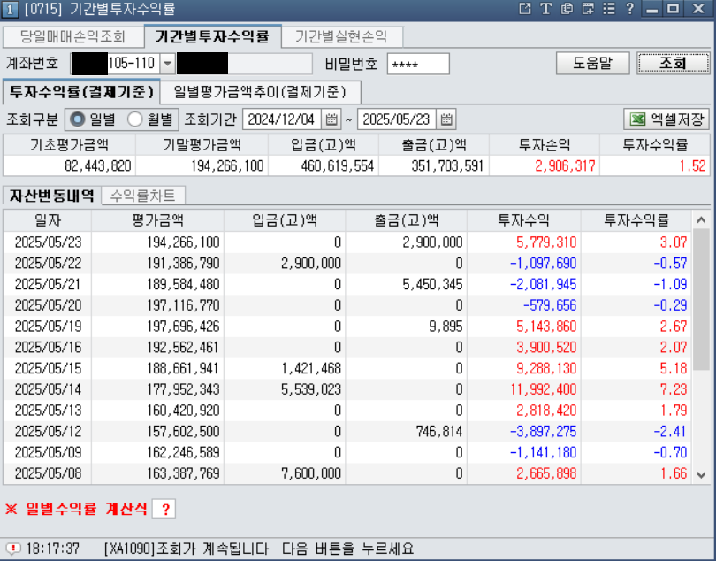 - 2025.06.09 :: 12.3 계엄 당시 투자 손실 발생 및 회복