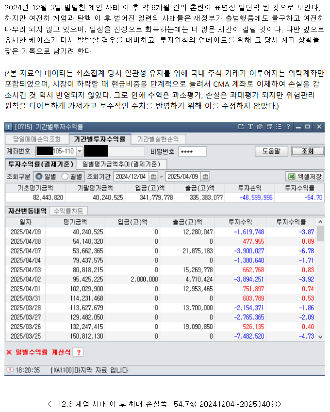 12.3 계엄 당시 투자 손실 발생 및 회복